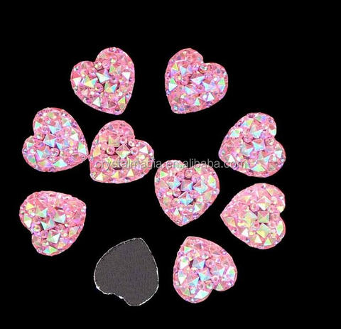 แผ่นเรซิ่นเย็บติดบนหินรูปหัวใจแบบหลังแบนสี AB